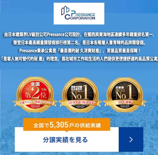 - 由榮獲多個奬項的日本著名建築商Pressance精心打造,外觀精緻,品質一流