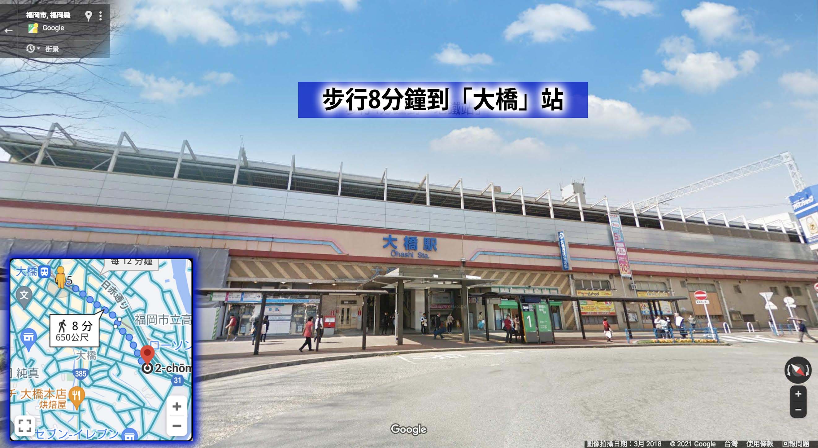 - 步行8分鐘到「大橋」站,2站即到九州最大商業區「天神」;