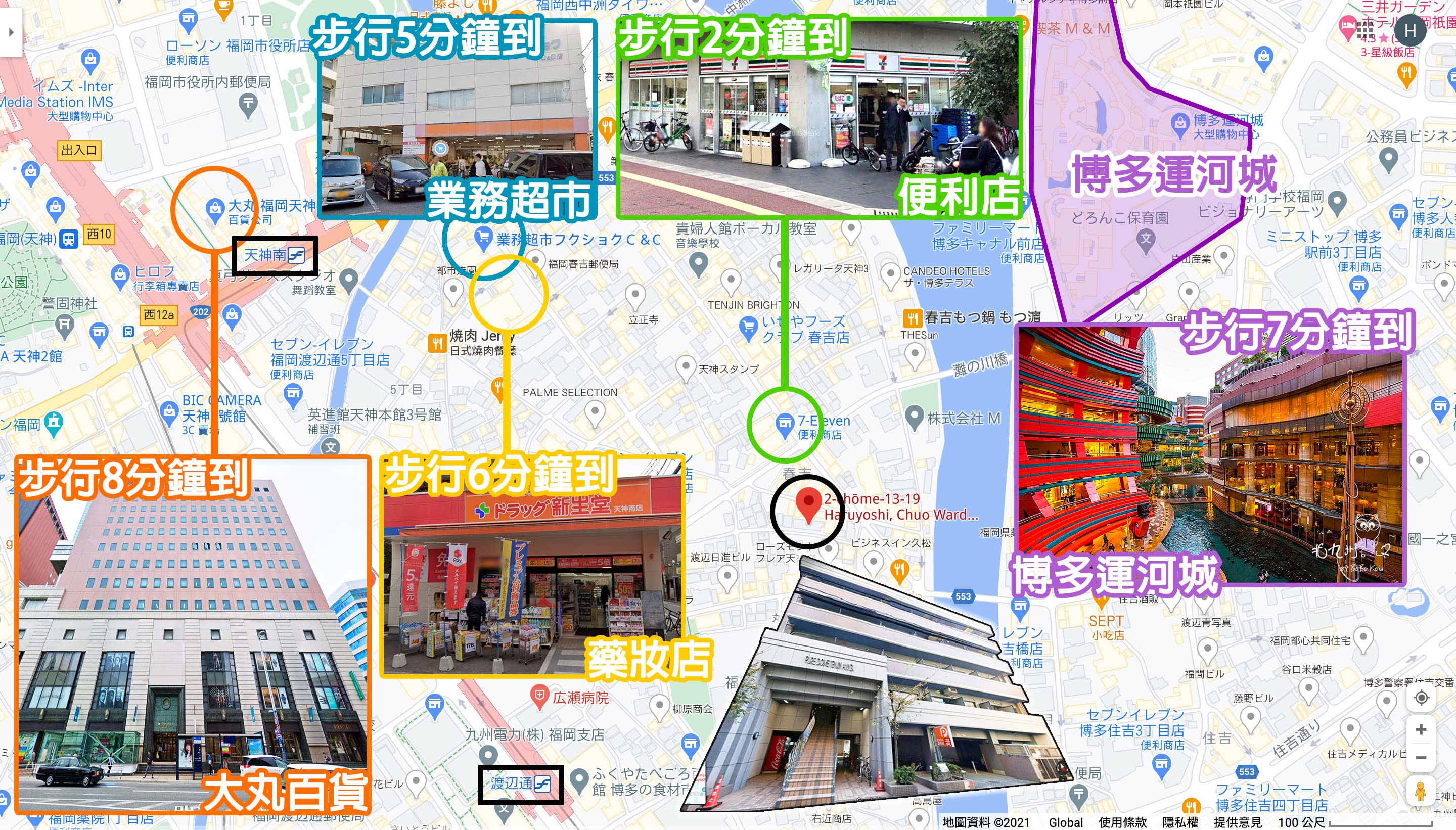 - 大廈徒步8分鐘到「天神南」站及徒步7分鐘到「博多運河城」,出租率極好;