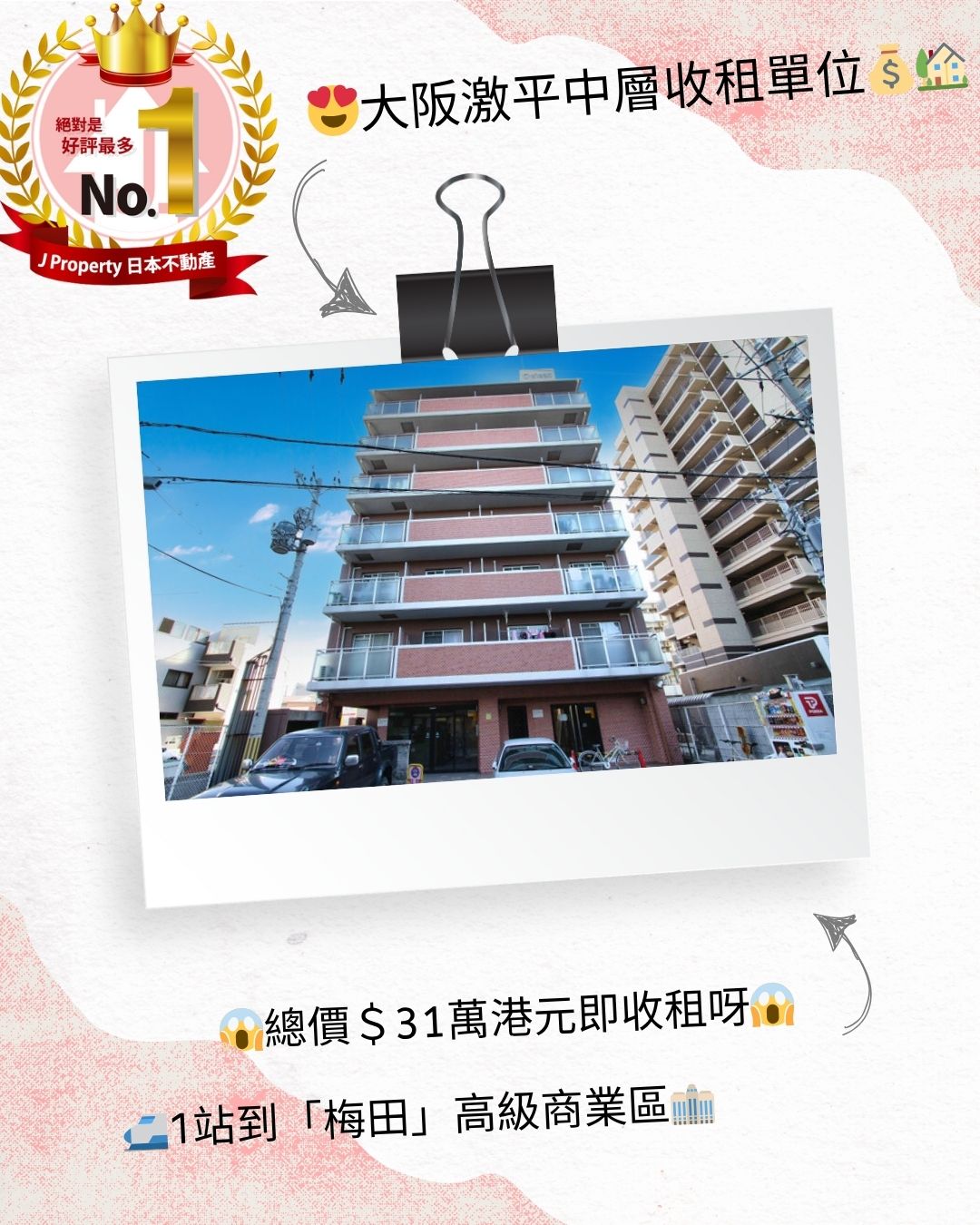 【J Property話,要買就要買最抵】 大阪激平中層收租單位,總價$31萬港元即收租呀 ,1站到「梅田」高級商業區,鄰近大型超市藥妝店