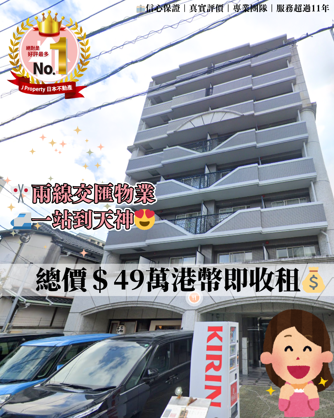 【福岡中央區】 兩線交匯物業,一站到天神,95年落成|低管修費|年輕租客 ,總價49萬港幣即 收租