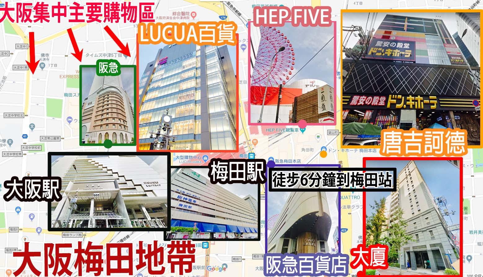-梅田為大阪的重點商業區,交通四通八達,此區價值極高;