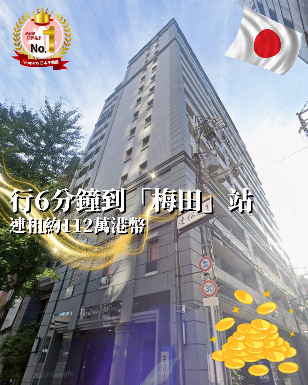 大阪(梅田盤) -大阪商業核心地段,猶如香港尖沙咀 -梅田徒步區,2000後高層單位,步行7分鐘到「梅田」站 -大阪TOP 5升幅最高+名牌發展商打造 -總價約112萬港幣連租約