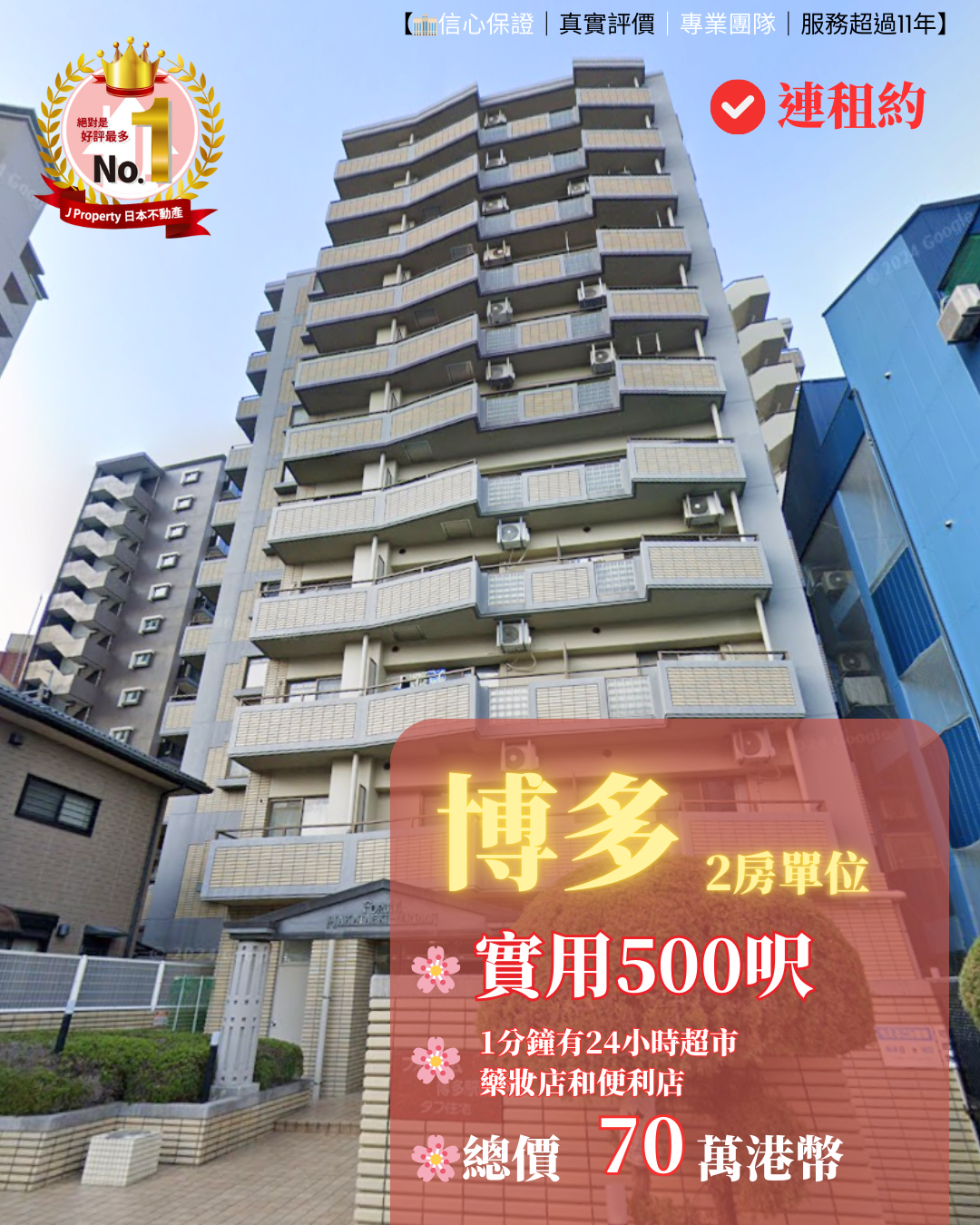 【博多超值物業】【2房單位】 福岡博多站附近,高層8樓,1分鐘有24小時超市、藥妝店和便利店,總價$70萬港幣