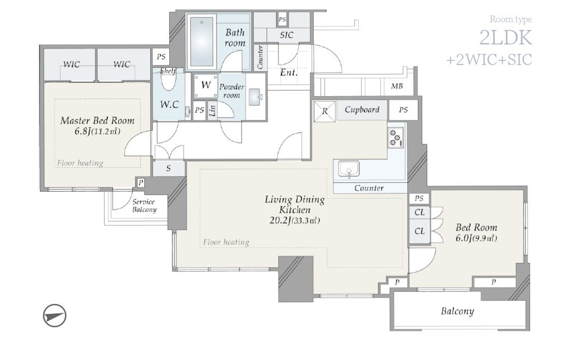 (室內) 877.58平方呎 + (露台)56.40平方呎 |