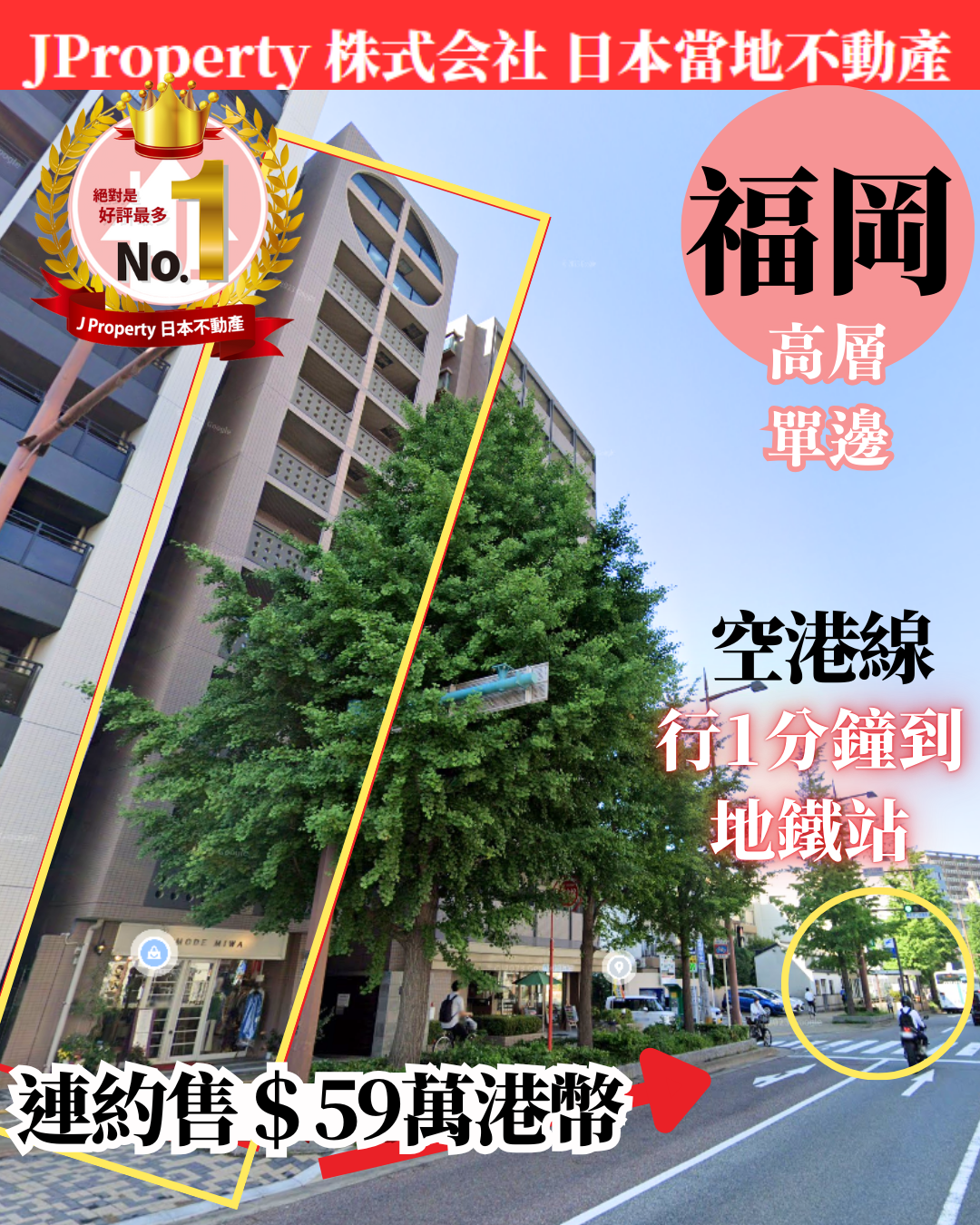 福岡高層收租盤,當地人氣居住地 ,大廈徒步1分鐘即到「唐人町」站 ,單邊角部屋,連約售$59萬港幣,即收租