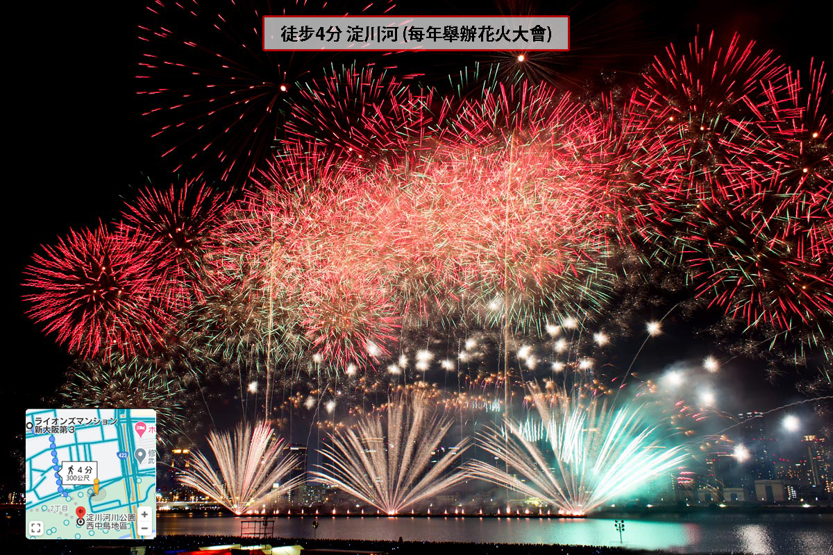 -徒步4分鐘到澱川河川公園,每年在這裡會舉行煙花大會