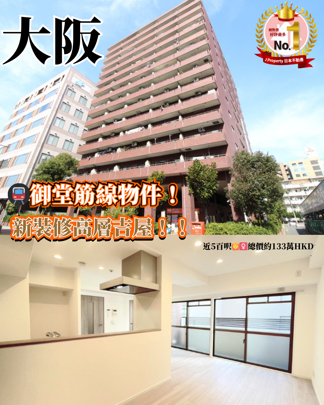 行幾步就可以睇花火大會 大阪( 禦堂筋線物件!)新裝修高層吉屋!!