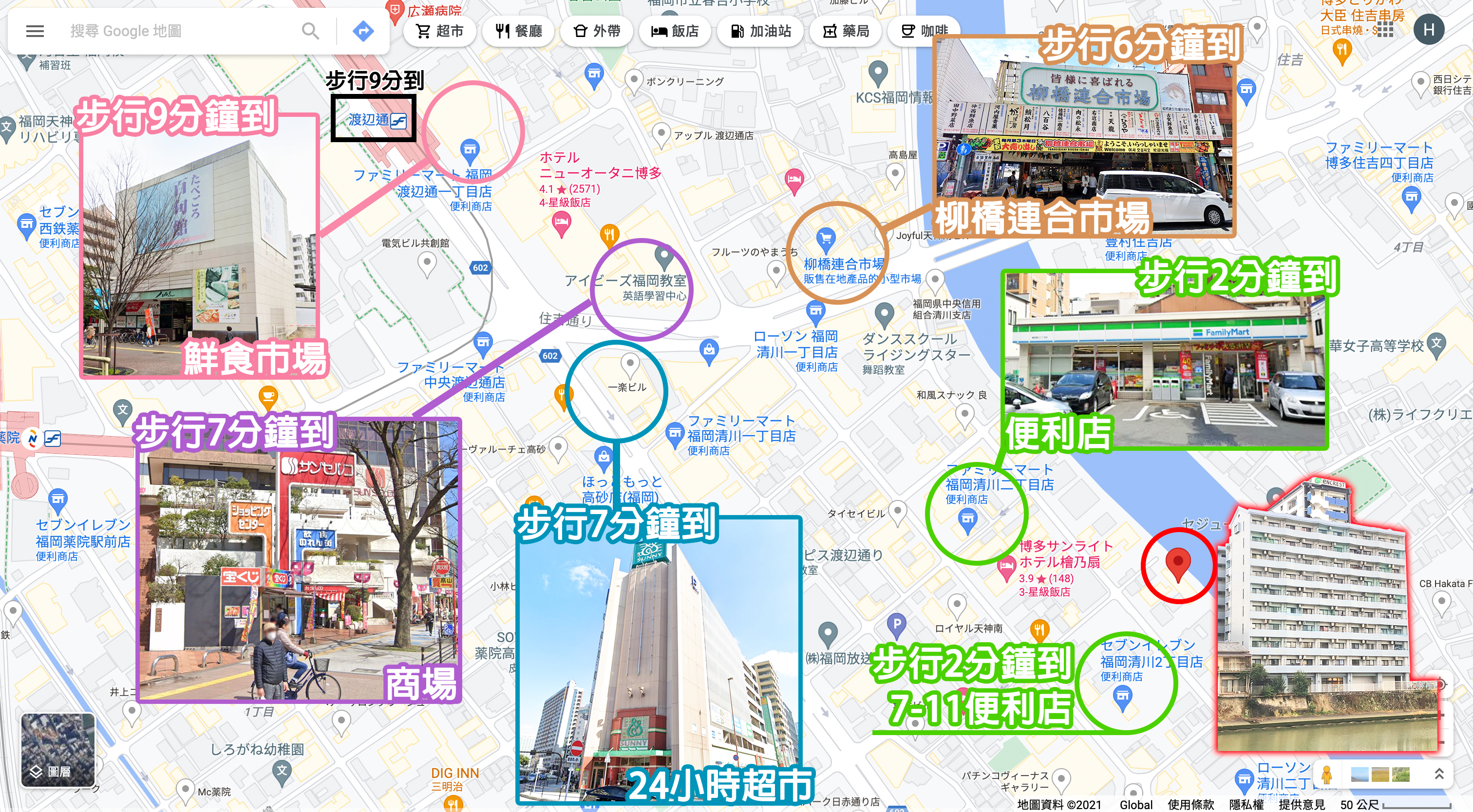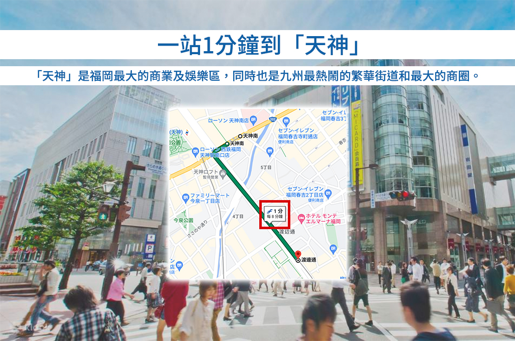 廈徒步9分鐘到「渡辺通」站,一站4mins到天神,通勤租客最中意