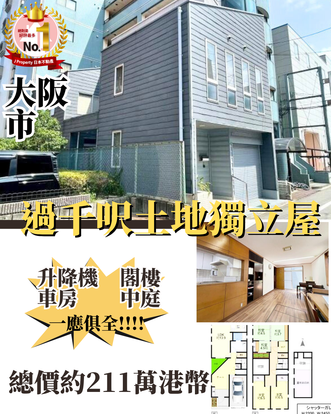 【大阪市,過千呎土地獨立屋|連電動車房+升降機】 大面積土地 ×寛闊前路 × 收納超充足