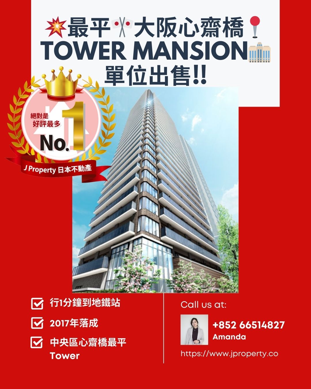 最平,大阪心齋橋,Tower Mansion,單位出售 ,行1分鐘到地鐵站,頂級豪宅