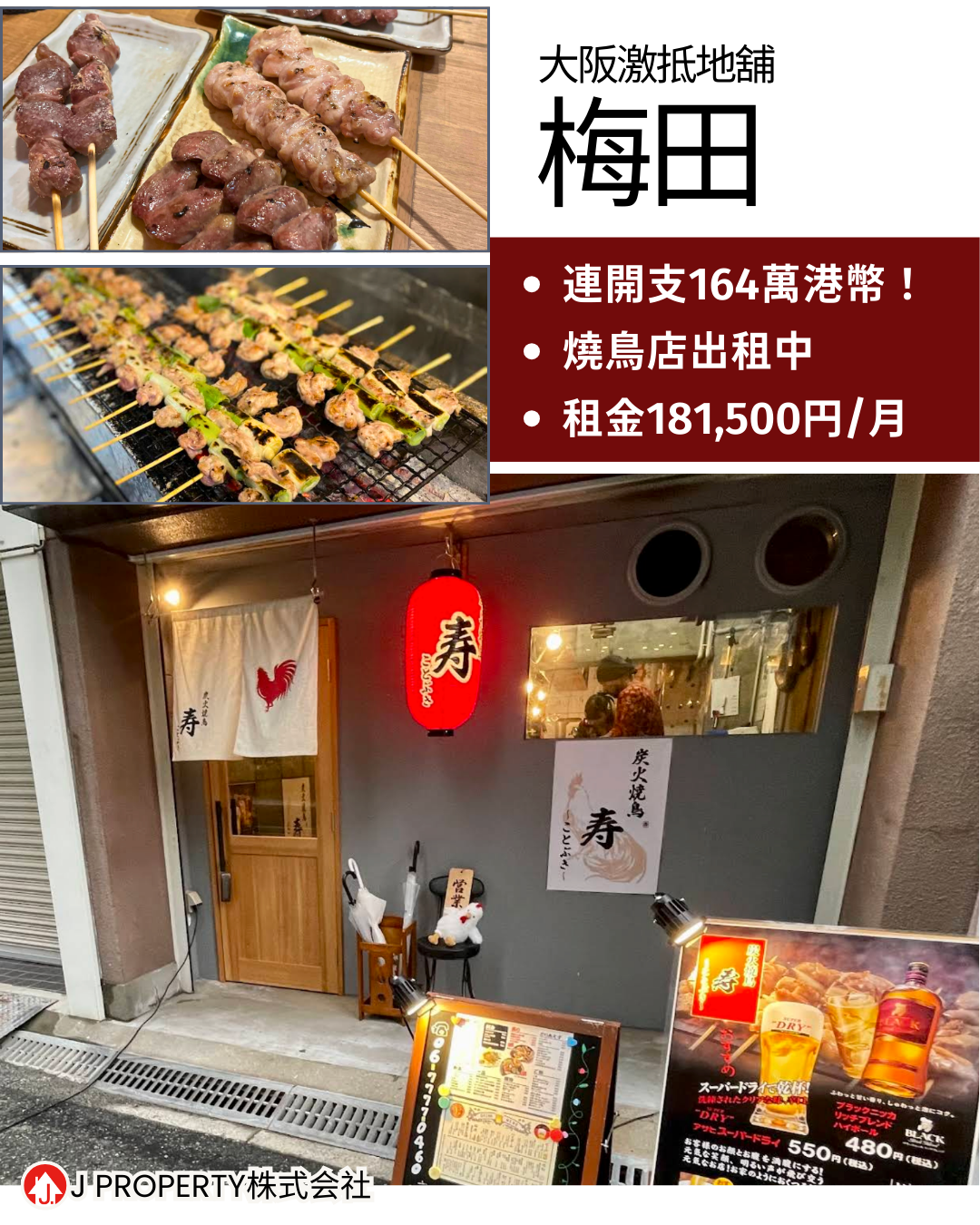 【梅田地舖出售!!】 大阪梅田 高級商住區 燒鳥店出租中 超值連開支164萬港幣